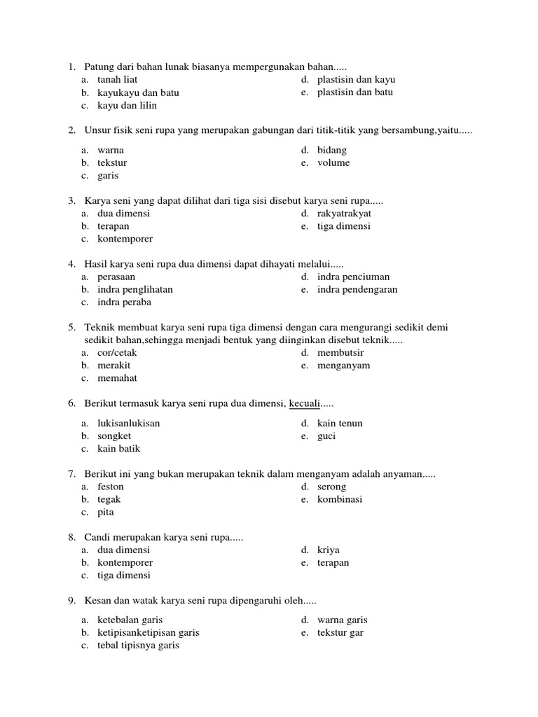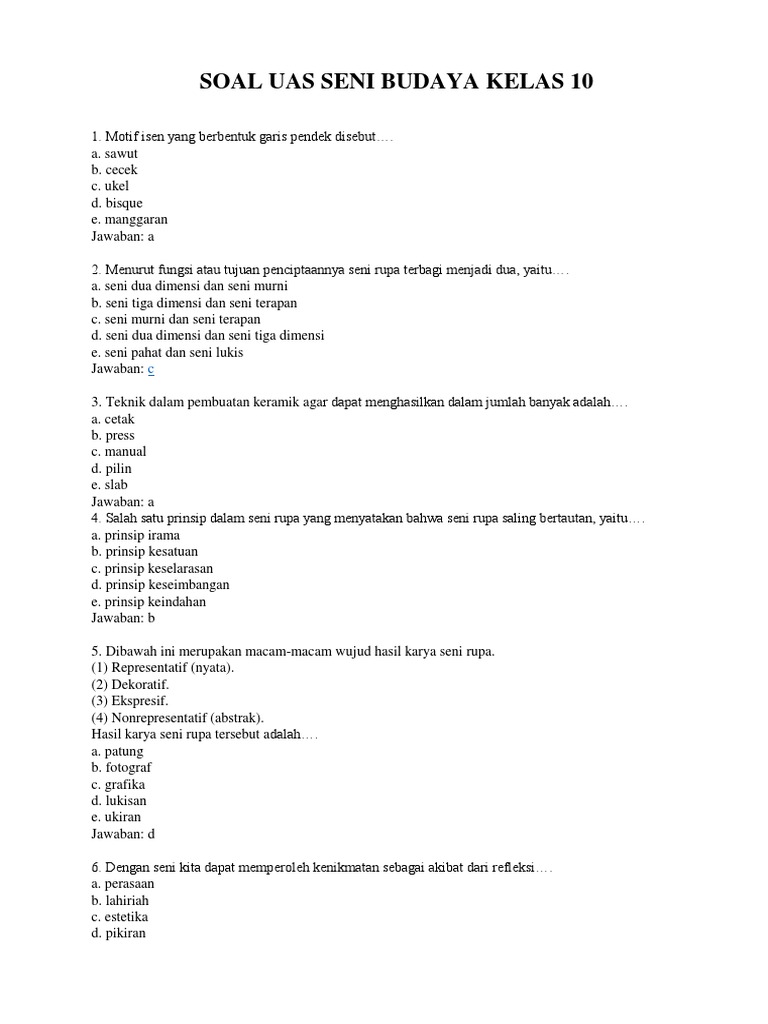 Soal Uas Seni Budaya Kelas 10 from imgv2-1-f.scribdassets.com Eba hesabı ile giriş yap. Motif isen yang berbentuk garis pendek disebut…. Seni dua dimensi dan seni murni b. Seni tiga dimensi dan seni terapan c. Kami mengumpulkan soal dan jawaban dari tts (teka teki silang) populer yang biasa muncul di koran kompas, jawa pos, koran tempo, dll. Get free outlook email and calendar, plus office online apps like word, excel and powerpoint. Pastinya, cecek tidak digambar di sembarang tempat, tapi juga mempertimbangkan motif batik itu sendiri. Seni budaya keelas x smt 1.